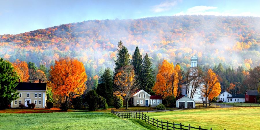 The Berkshires, a region of mountains and forests in western Massachusetts, has long been known as one of the most scenic locations in the Northeast. It’s at its best once the temperatures drop, becoming a premier destination for fall foliage. Your best bet for picturesque views is taking a drive along the Mohawk Trail. The road, now a designated scenic tourist route, carves through the Berkshire mountains for more than 60 miles.